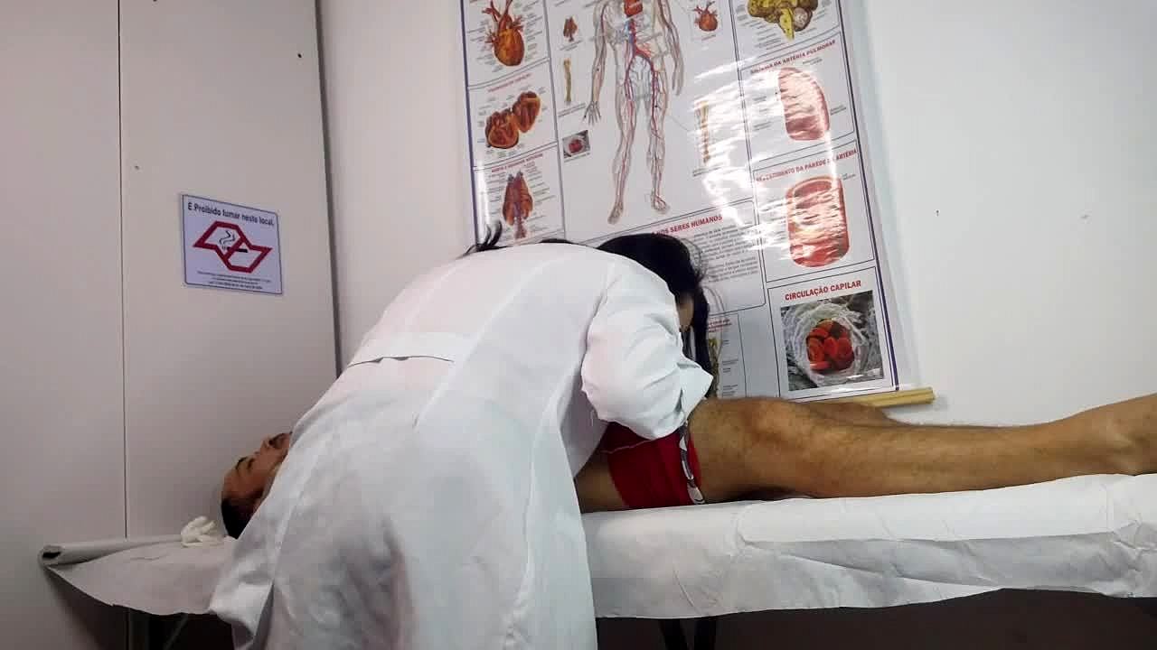 Paciente fica excitado na frente da enfermeira durante o exame médico