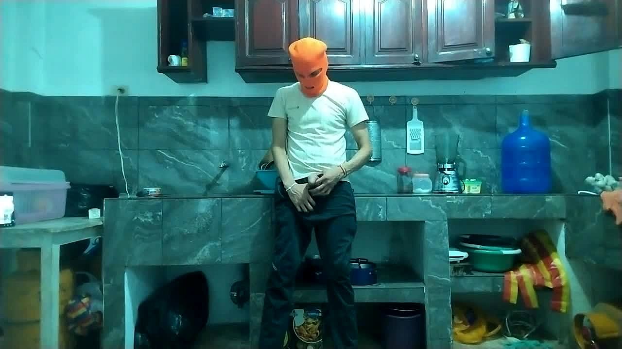 From Flaccid Penis to Erect Penis 25-Year-Old Man with a Big Penis Masturbates While Waiting for His Best Friend in the Kitchen