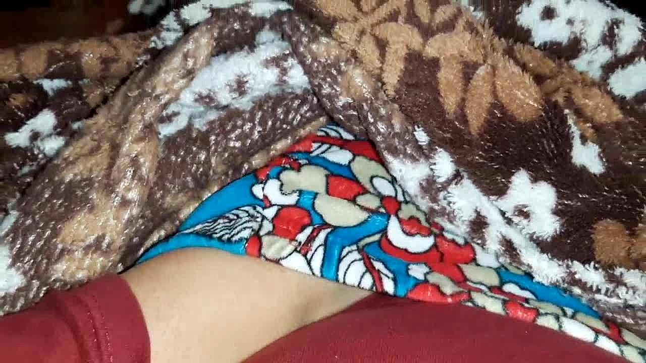 Stepsister massages legs as I secretly stroke under blanket to orgasm