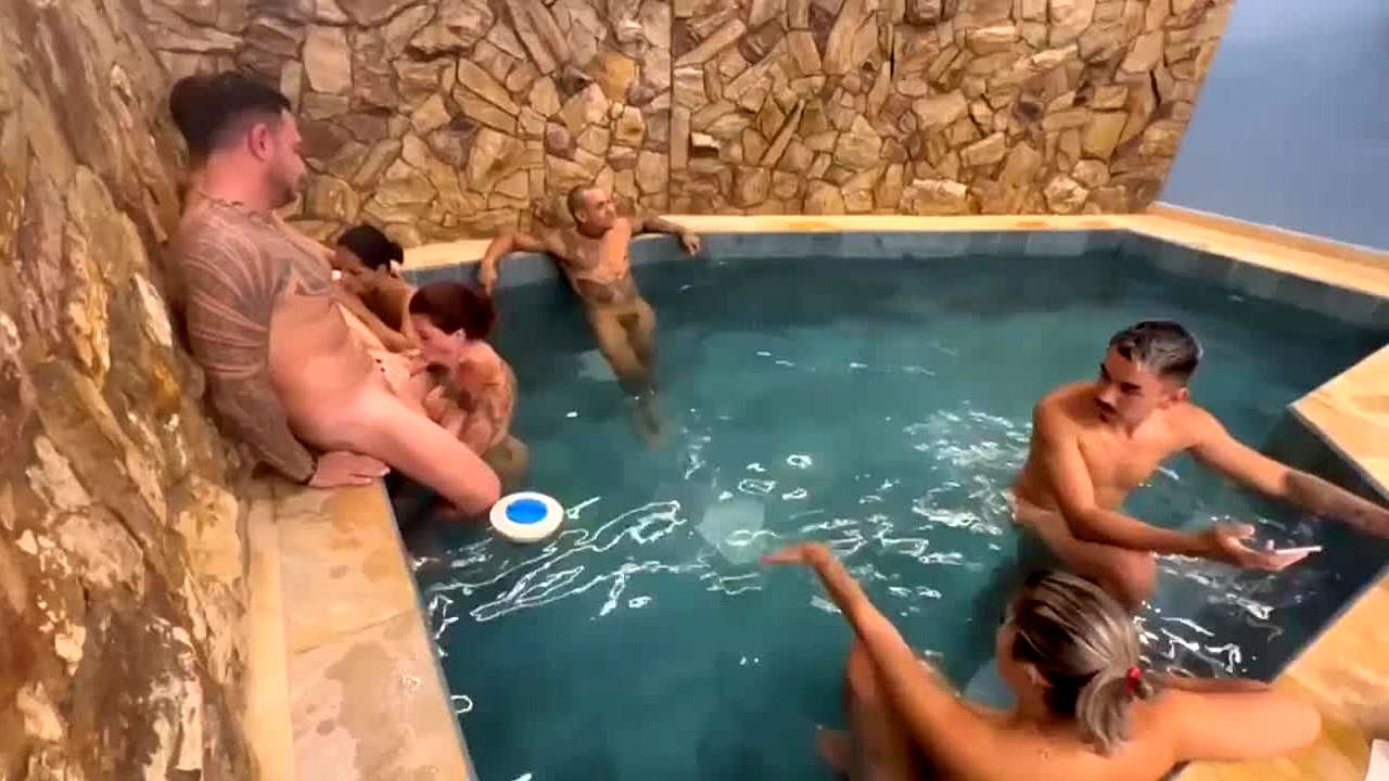 Pool party blowjob contest who makes him cum first? 😏🍆💦