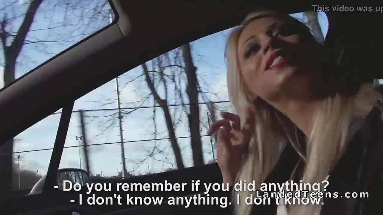 Blonde hitchhiker sucks cock deep in the car