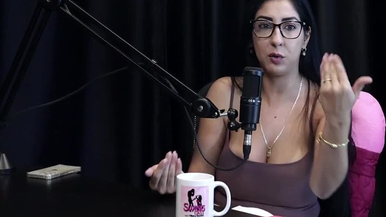 Swingers romp seaside Renatinha Melo bares sheer red lingerie tease
