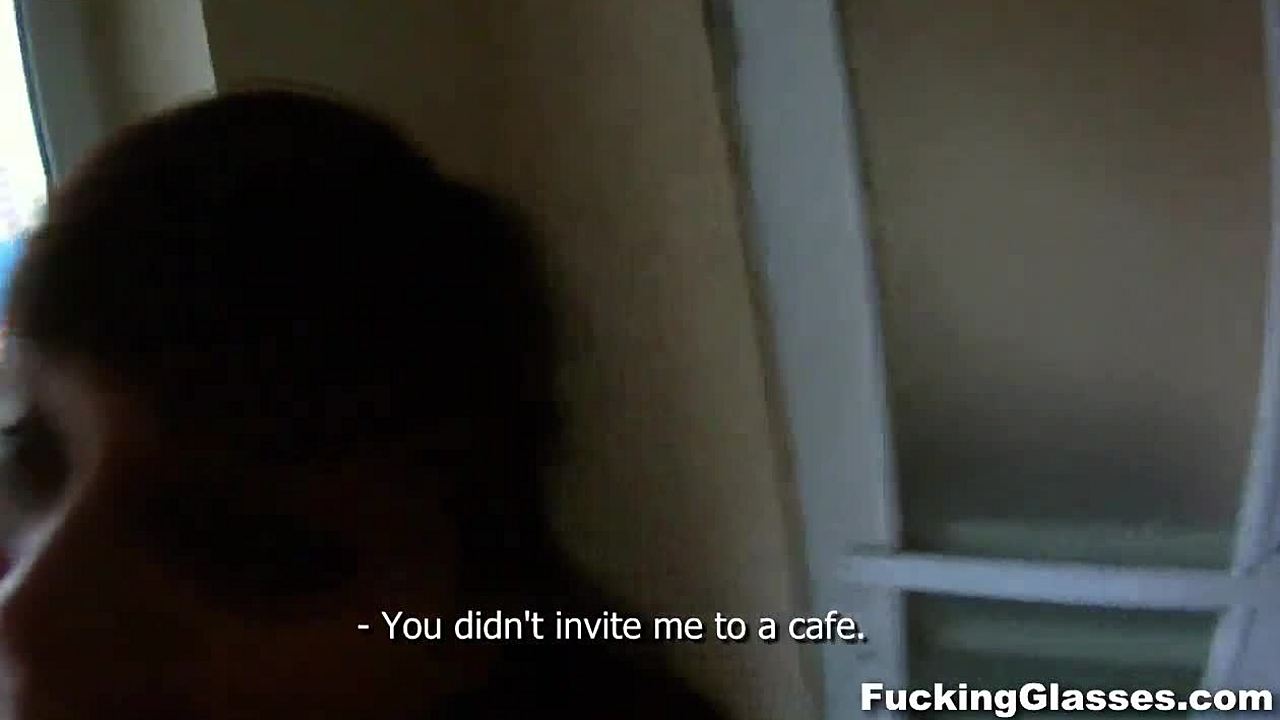 Fucking this shy glasses teen rina on stairway doggystyle shaved pussy closeup