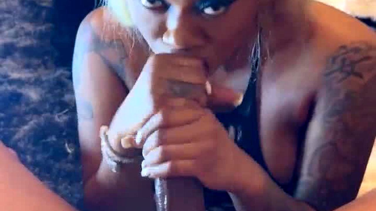 Ebony beauty sucks big black cock intensely